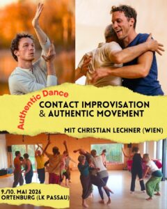 Kontaktimprovisation ermöglicht in Berührung zu gehen und sich dabei gleichzeitig frei zu bewegen. Für uns ist es eine non-verbale Kommunikationsform, die Achtsamkeit und Mut fördert.